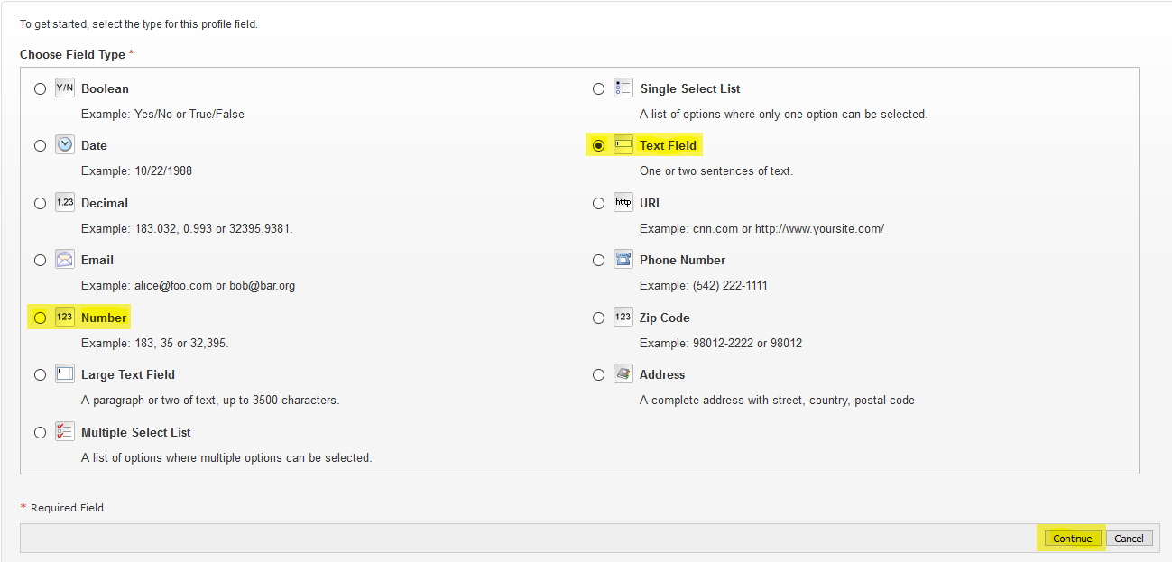 Under Choose Field Type select the variable type as “Number” or “Text Field” (to include x with a number, select Text Feld) for an extension.