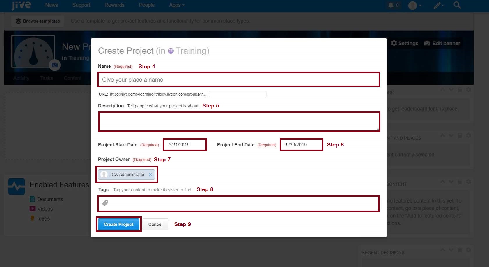 7. If necessary, change the project owner in Project Owner.