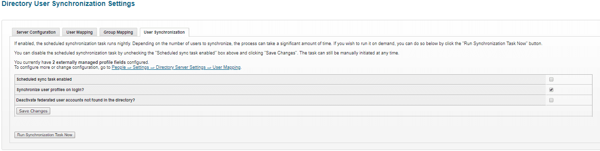 - Go to Admin Console > People > Settings > Directory Server Settings > User Synchronization